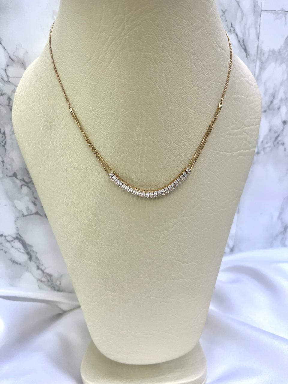 Aderezo de oro laminado de 18k, con incrustaciones de zircón blanco y detalle en balines.