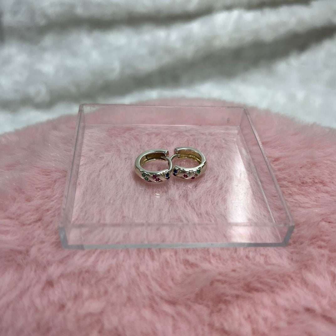 Candonga de plata ley 925 con pedrería de zircón en colores azul, verde y magenta. Plata de excelente calidad, garantizada.