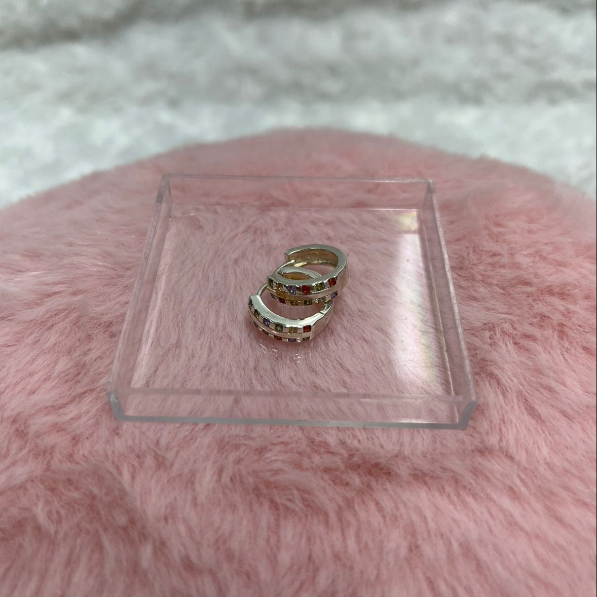 Candonga de plata tailandés ley 925, con pedrería de zircón en colores blanco, naranja, verde y lila. Plata de excelente calidad, garantizada.