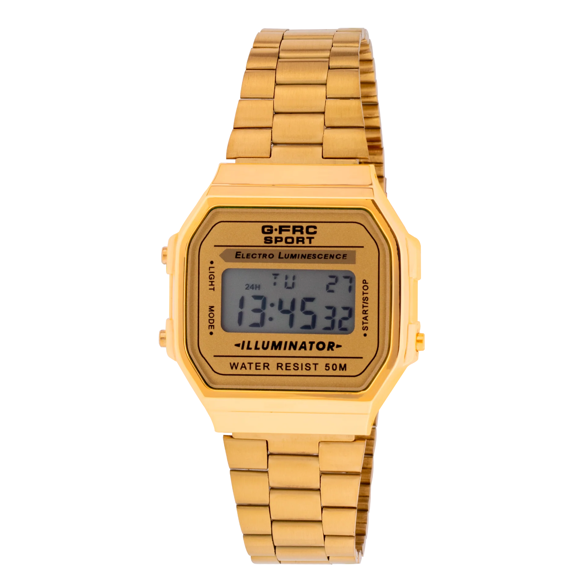 Descubre el Reloj G-FRC SPORT, con pantalla digital, alarma, luz, cronómetro y fecha. Su pulso de acero inoxidable con cierre ajustable garantiza comodidad y ajuste perfecto, mientras que la caja de resina proporciona durabilidad. Es ideal para cualquier aventura, desde entrenamientos hasta escapadas bajo la lluvia. Enfrenta cualquier desafío con estilo y confianza.